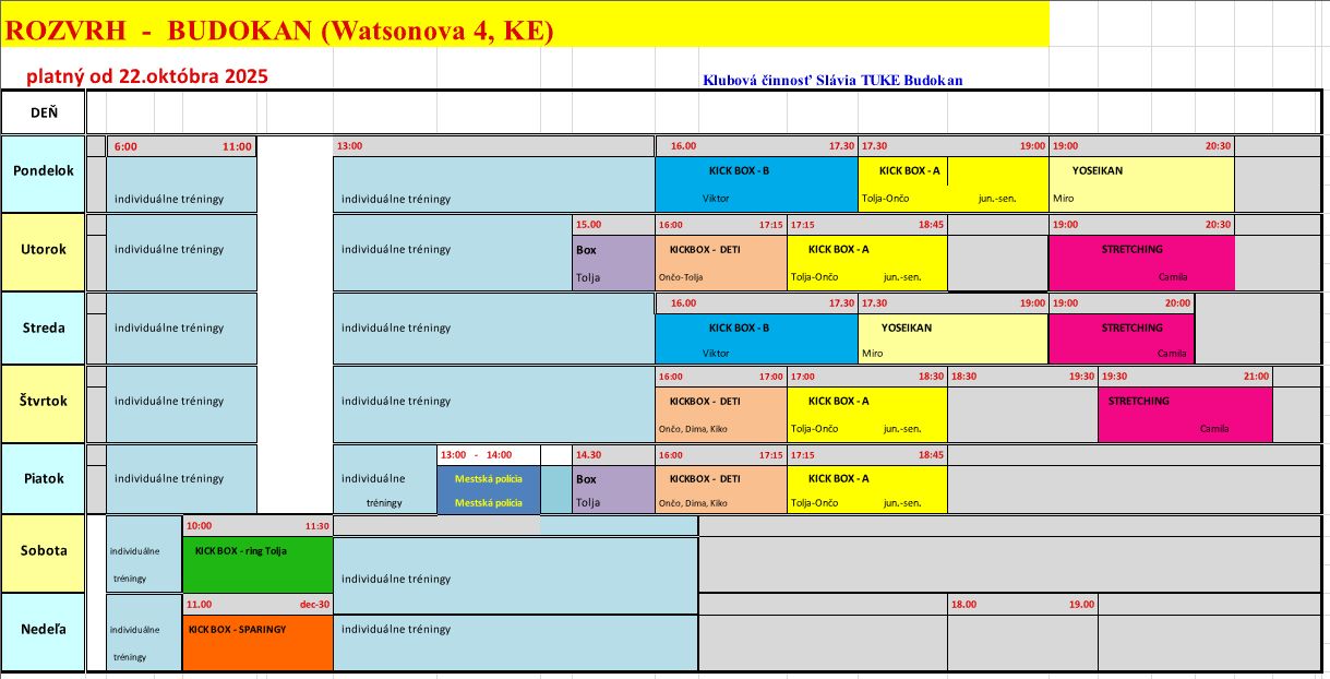 Rozvrh BUDOKAN, Watsonova 4