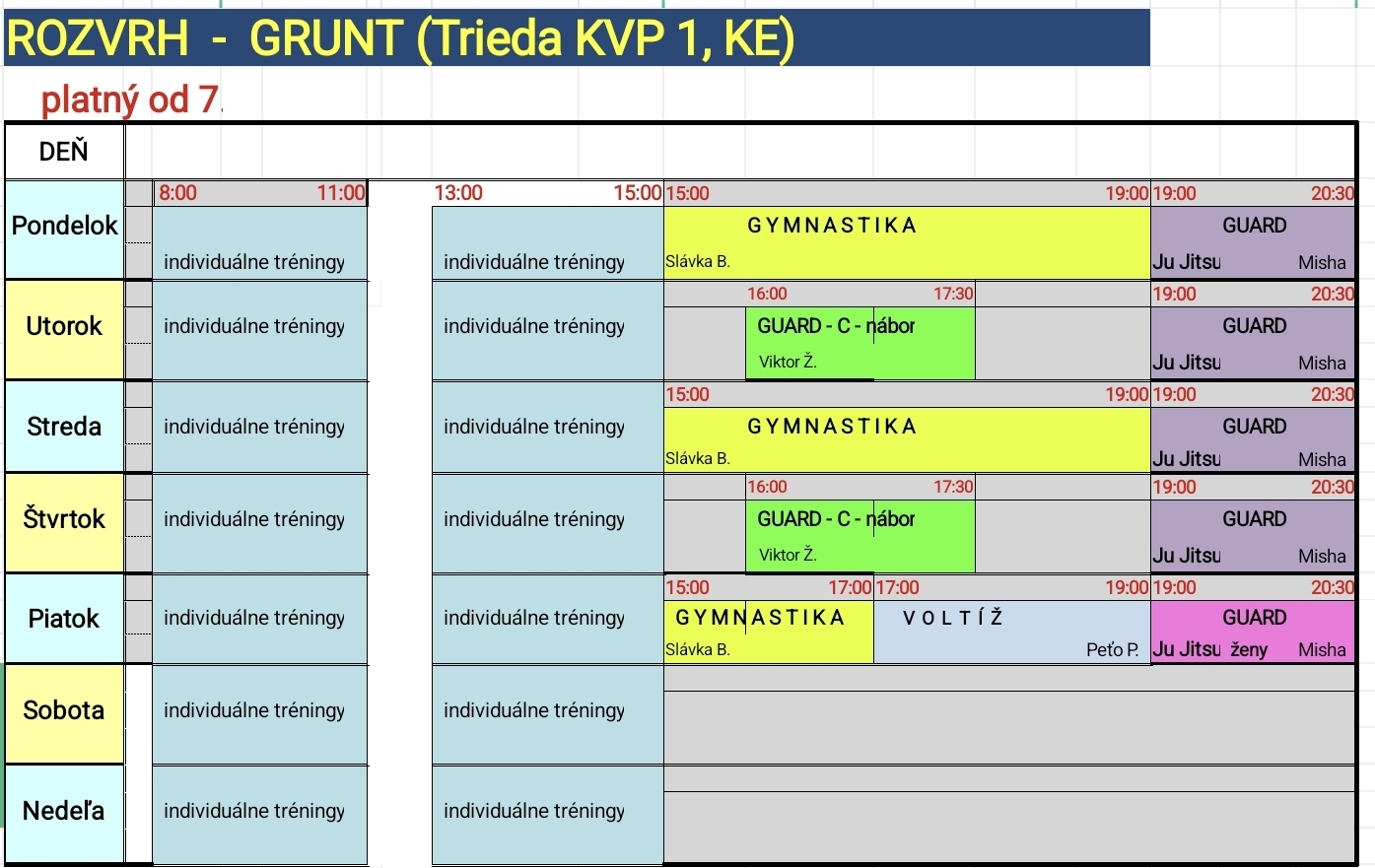 Rozvrh GRUNT, Trieda KVP 1 (Billa KVP, 1. poschodie)